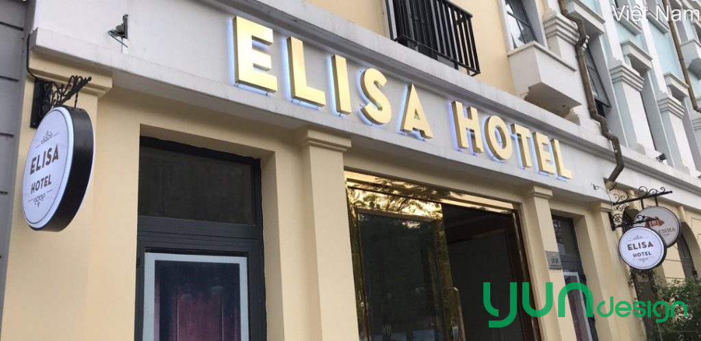Lớp hiển thị chính: chữ nổi mica/inox hoặc làm bảng hiệu LED (hắt sáng, hộp đèn).